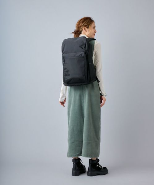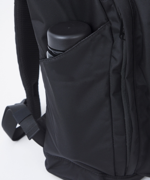 さらに斜めにカットされたサイドポケットは500mlのペットボトルが隠れ、後ろからの見え方がすっきりとした印象に見せることができ、シンプルながら細部にもこだわったリュック。