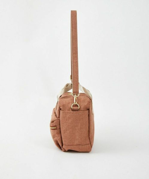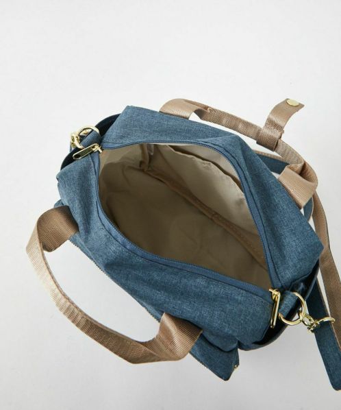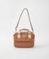 牛革とゴールドの金具、光沢のあるテープ使いで上品さ底上げしています。500mlペットボトルや長財布がすっぽり入るサイズ感。お出かけに必要な荷物がきちんと入ります。