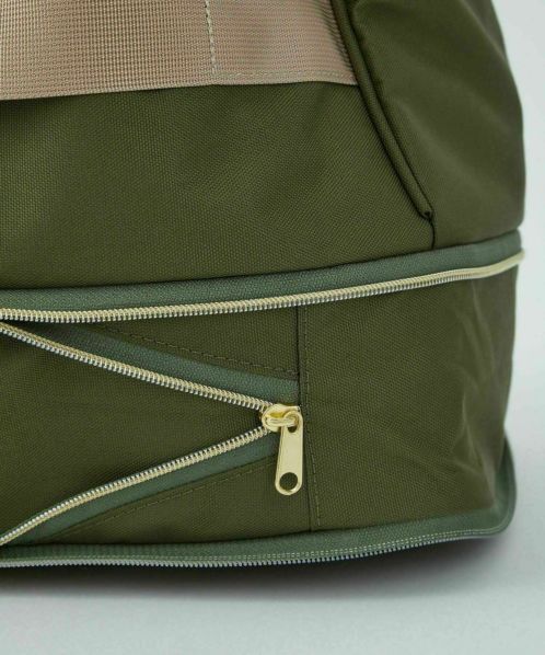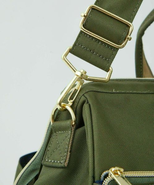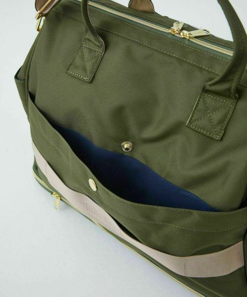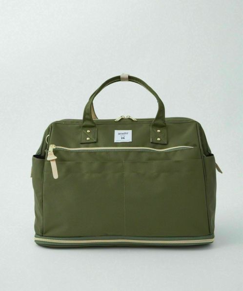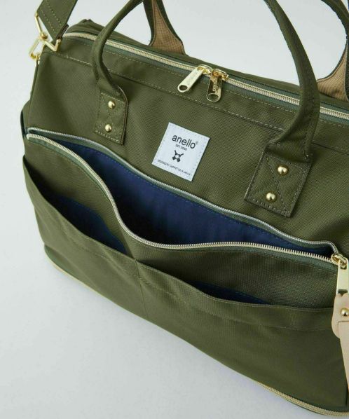 ペットボトルをリサイクルしたREPREVE®にはっ水加工を施し、anelloのアイコンシリーズを刷新。さらに、本革スエードからエコスエードに変更しました。用途に合わせて容量を拡張できる仕様が魅力的。背面側にはキャリーハンドルに通すための面ファスナーが付いており、キャリーに載せたときに安定します。取り外し可能なショルダー付き。
