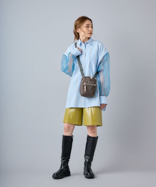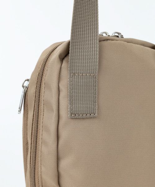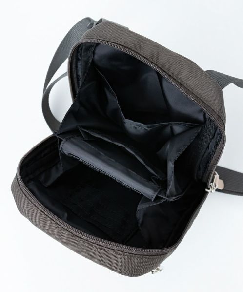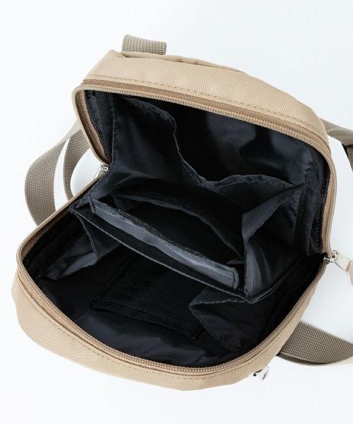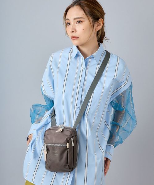 程よい光沢のポリエステル生地にシルバージップがアクセントの"THREE"シリーズ。前面にはアクセスの良い3つのアウトポケットを装備し、使いやすさとデザイン性を兼ね添えたシリーズ。中身がお財布機能になっているミニバッグ。母子手帳やカード、パスポートも収納可能で買い物や旅行にも最適です◎