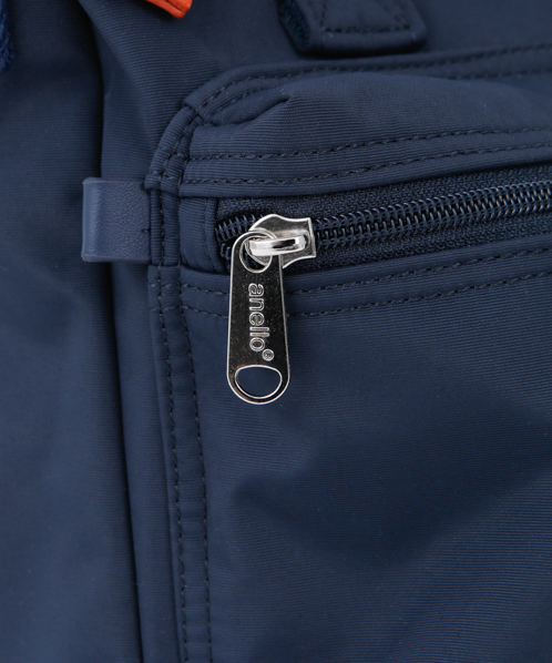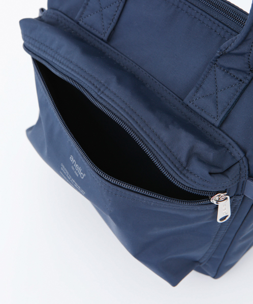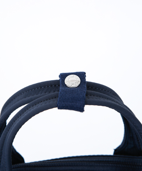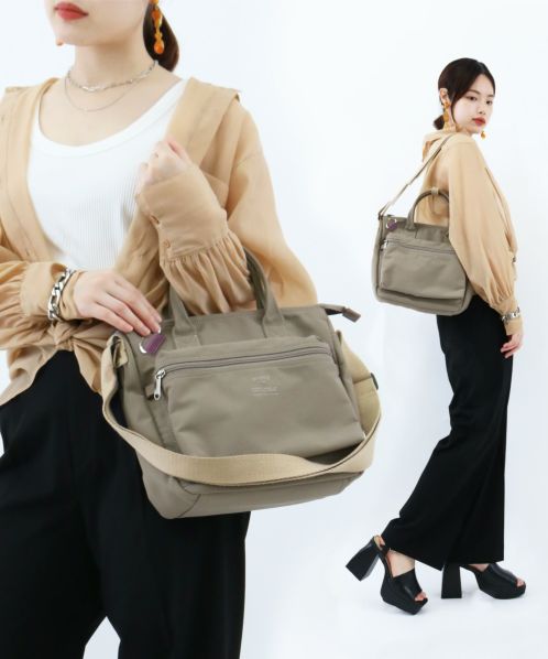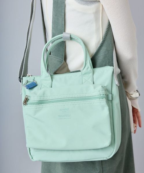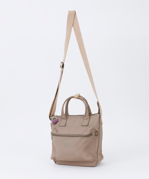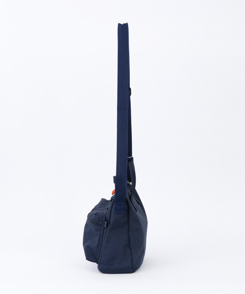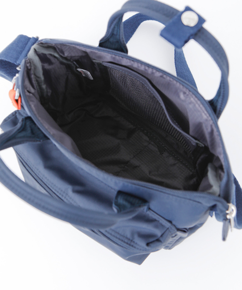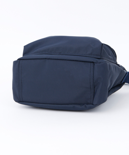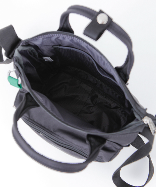 ハリのあるグログラン調ナイロンを使用したシンプルでベーシックなデザインシリーズ。500mlペットボトルが縦に収納ができるちょうどいいサイズ感。内側には見えやすいメッシュポケットがあるので鍵や小物が探しやすく便利◎両面撥水加工なので雨の日も安心です。スエードタッチ生地をカラーアクセントにしたカラビナパーツがポイント。