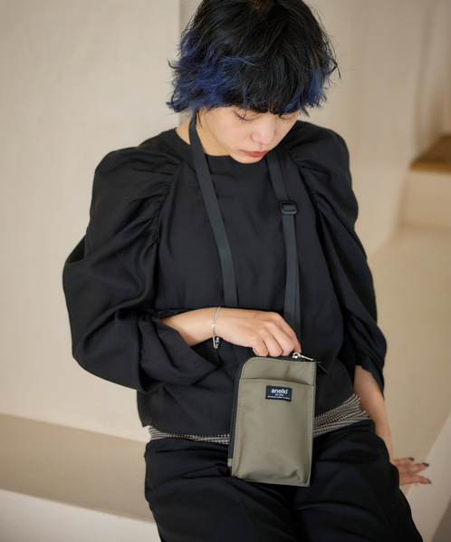 両面撥水加工を施したシンプル&ベーシックな「TO GO」シリーズ。コンパクトなサイズ感ですが、メイン口には4cmの隠しマチがあるのでスマホをスマートに収納可能です。前面のアウトポケットは、立体的なつくりで物の出し入れがスムーズに。撥水で汚れにくく、アウトドアやフェスなどのアクティブなシーンにもぴったりです。