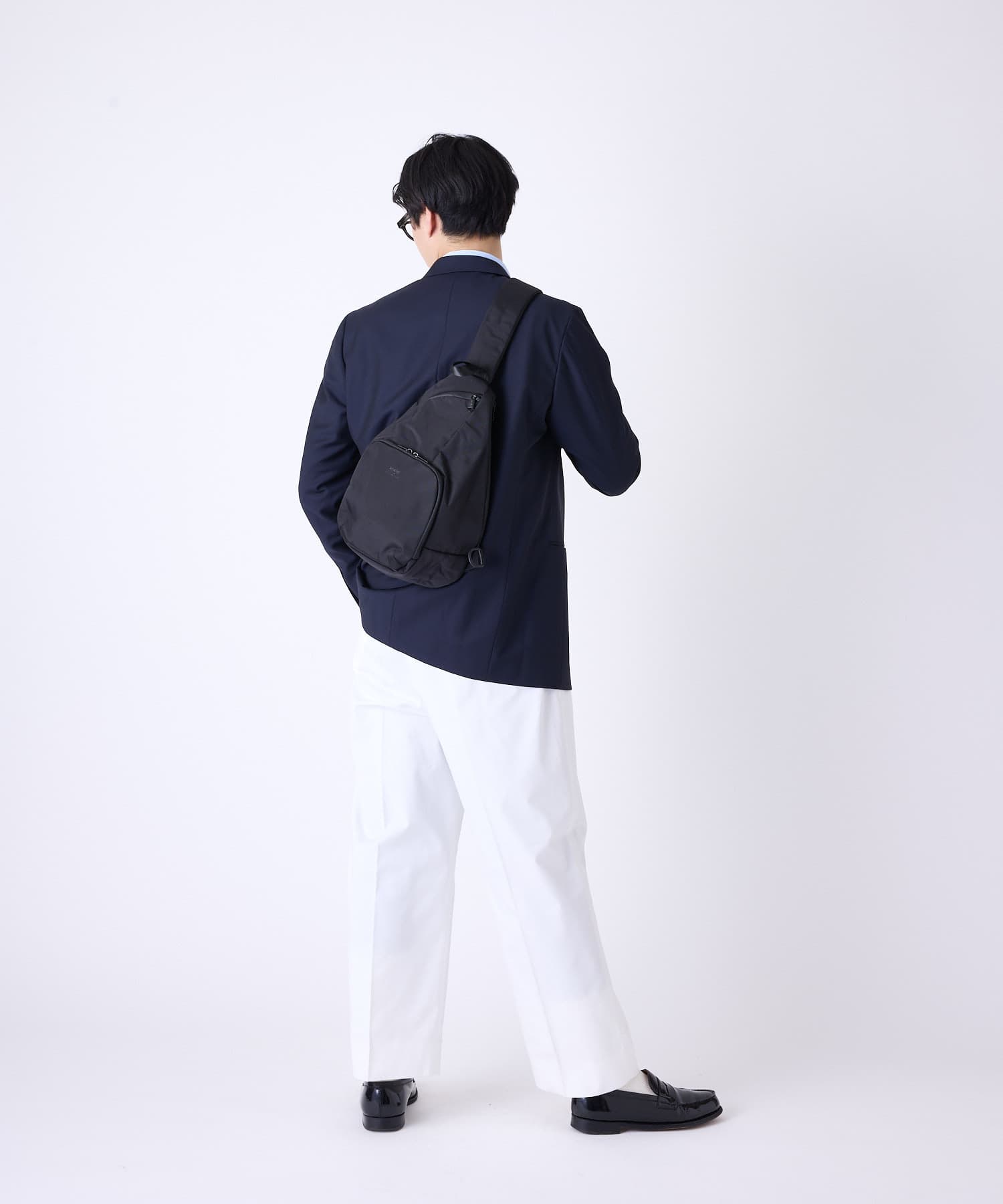 撥水加工を施した、程よい光沢感のあるナイロン生地を使用したシリーズ。なだらかな涙型のクロスボディバッグは、体にフィットするシルエットで使い勝手抜群◎前面ファスナーポケットはお財布機能がありお会計の際スムーズに取り出し可能。A5サイズ収納でき8ポケットもあるスリムなサイズ感で、ちょっとしたお出かけやお買い物にぴったりです。