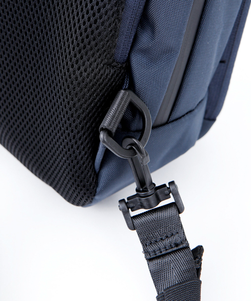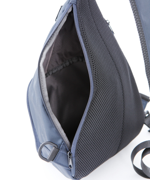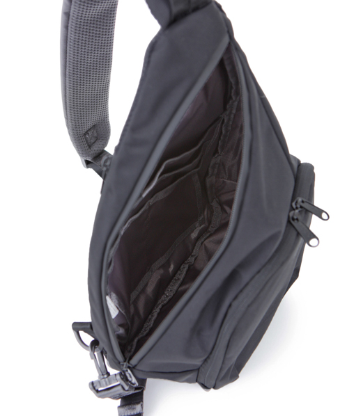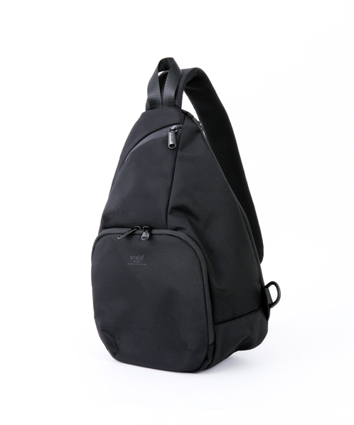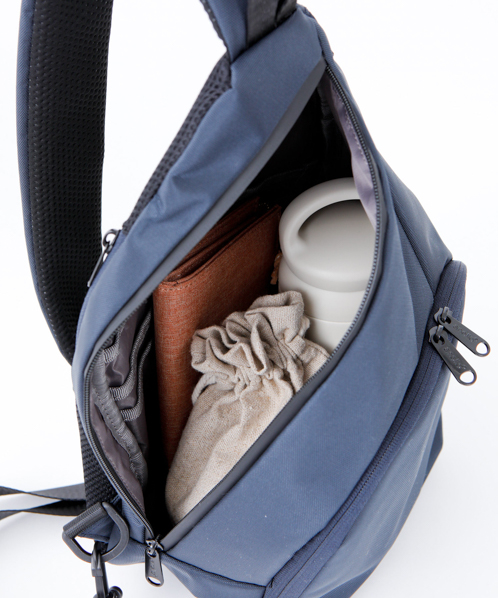 撥水加工を施した、程よい光沢感のあるナイロン生地を使用したシリーズ。なだらかな涙型のクロスボディバッグは、体にフィットするシルエットで使い勝手抜群◎前面ファスナーポケットはお財布機能がありお会計の際スムーズに取り出し可能。A5サイズ収納でき8ポケットもあるスリムなサイズ感で、ちょっとしたお出かけやお買い物にぴったりです。