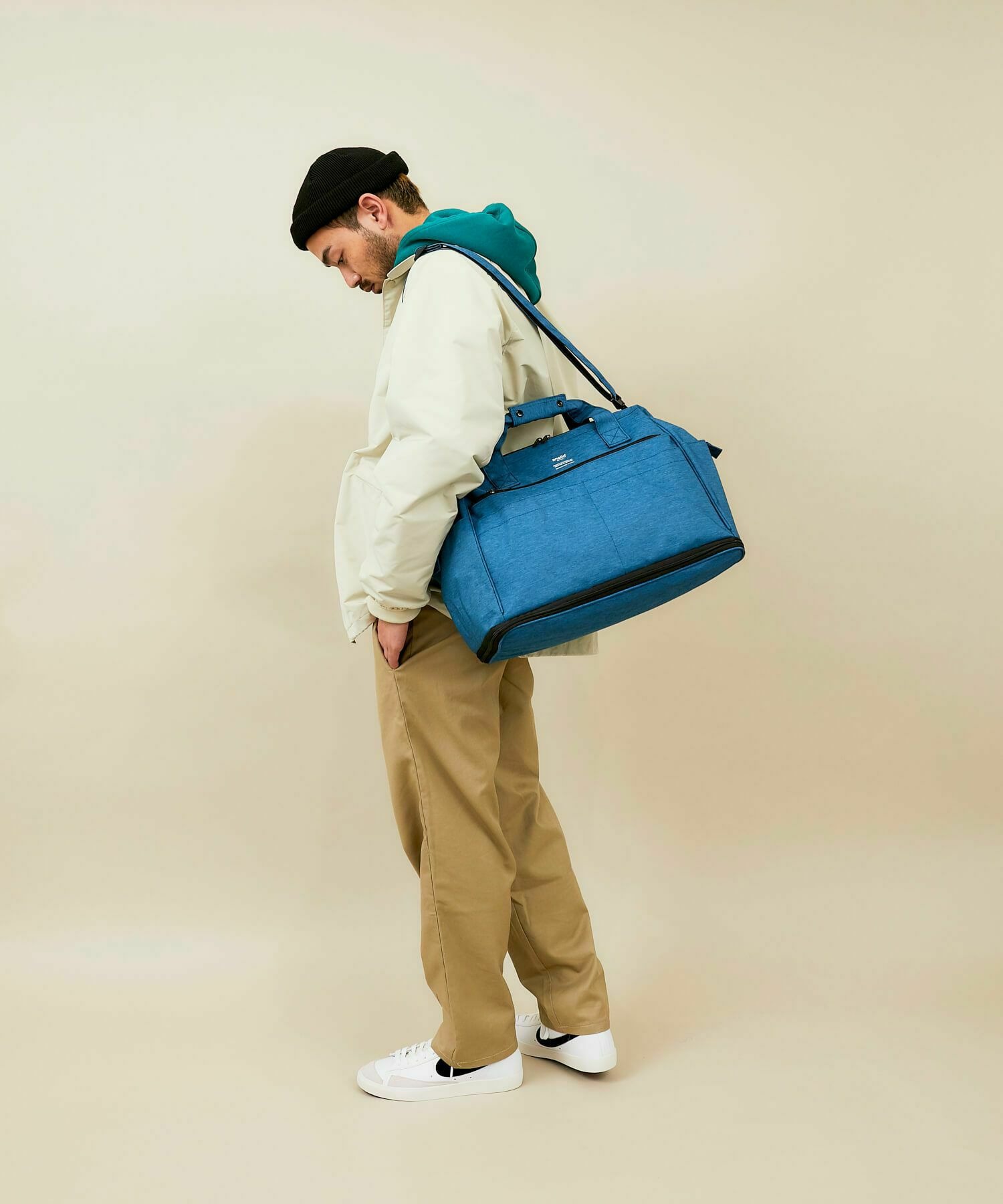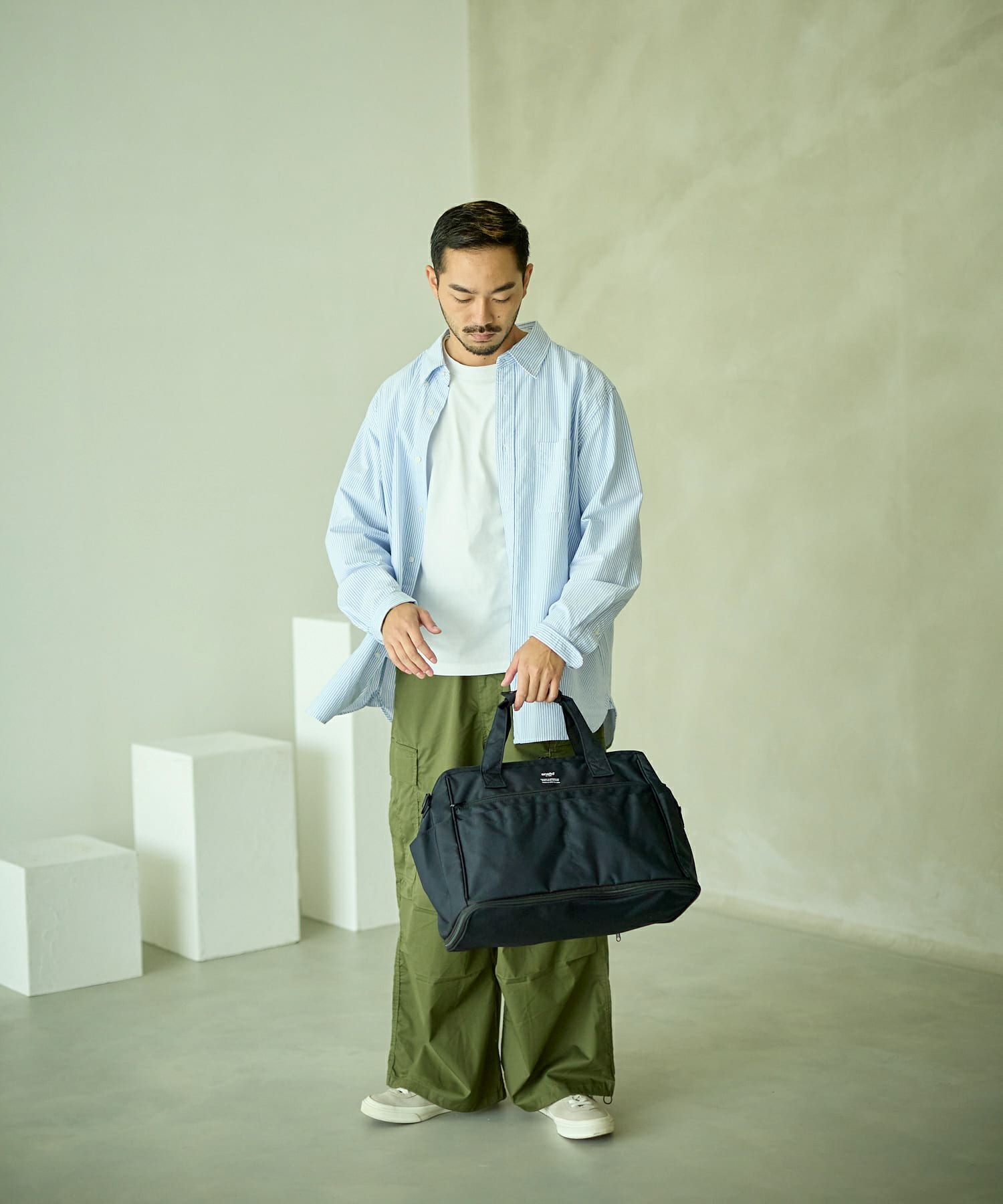 撥水加工を施した生地を使用。用途に合わせて拡張できる仕様が魅力的なポイントです。取り外し可能なショルダー付き。背面側にはキャリーハンドルに通すための面ファスナーが付いており、キャリーに載せても安定してズレが気になりません。オンオフ問わず、通年幅広いシーンで活躍してくれること間違いなしです。 シリーズ一覧