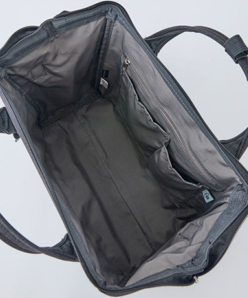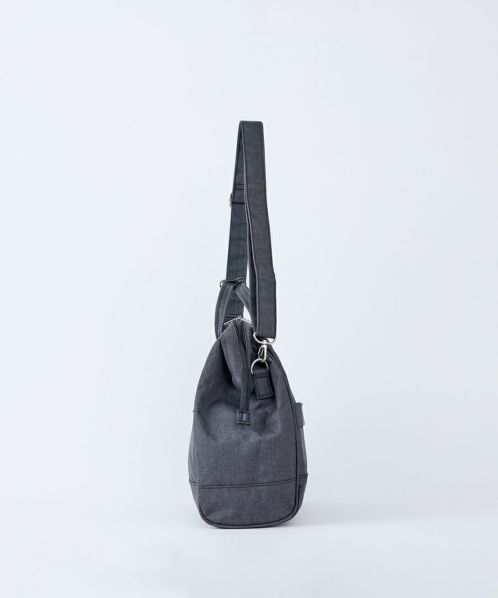 ペットボトルリサイクル生地のREPREVEに、風合い豊かな杢糸生地が登場!ファスナーや刺繍ネーム、引手パーツを本体と同色にし、艶をおさえたシルバー金具で全体のバランスをとりました。口金型のA4サイズが収納可能なショルダーバッグ。すっきりとした見た目でマチは14cmと意外としっかりと荷物が入るのがうれしいポイント。キャリーオンテープ付きなので旅行の手持ちバッグとしても便利。