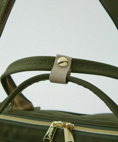 ペットボトルをリサイクルしたREPREVE®にはっ水加工を施し、anelloのアイコンシリーズを刷新。さらに、本革スエードからエコスエードに変更しました。用途に合わせて容量を拡張できる仕様が魅力的。背面側にはキャリーハンドルに通すための面ファスナーが付いており、キャリーに載せたときに安定します。取り外し可能なショルダー付き。