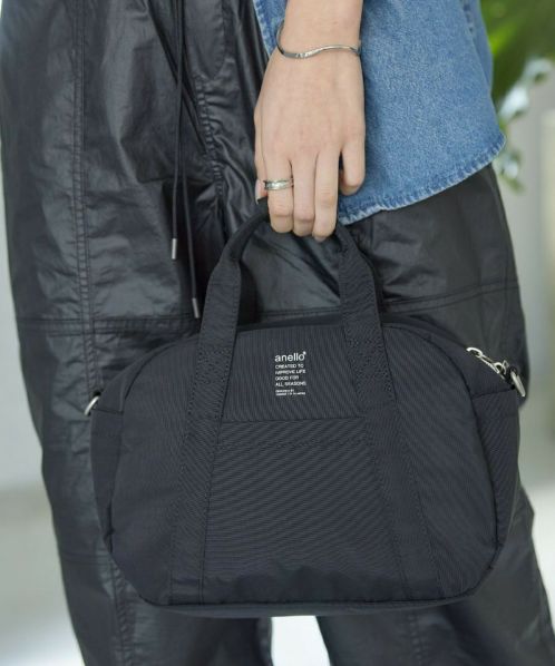 金属カラーのパーツがアクセントの、PARADE(パレード)シリーズ。さらっとした軽量ナイロン生地の、軽く持ちやすいバッグです。嬉しい両面撥水仕様で、ポケットもたくさん。コロンと丸い形の2WAYミニボストンバッグ。程よいサイズ感で、カジュアルなファッションにぴったりです。