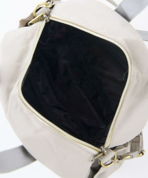 金属カラーのパーツがアクセントの、PARADE(パレード)シリーズ。さらっとした軽量ナイロン生地の、軽く持ちやすいバッグです。嬉しい両面撥水仕様で、ポケットもたくさん。コロンと丸い形の2WAYミニボストンバッグ。程よいサイズ感で、カジュアルなファッションにぴったりです。