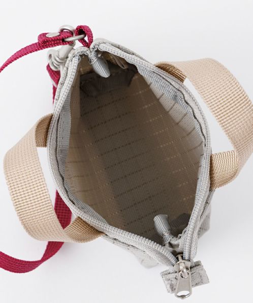 張り感のある生地とリップストップのデザインを活かした軽量シリーズ。付属のDカンパーツにはあなたの好きなものをぶら下げて、気持ちも明るく軽やかに持てる。ミニサイズのポーチはストラップ付なので、お手持ちのバッグにチャーム感覚で付けることができます。コンパクトながらカードやリップ等の小物がしっかりと収納可能。