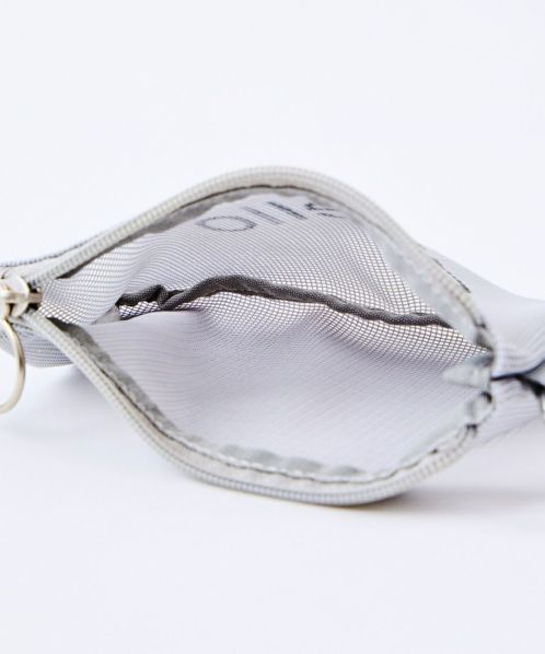 中身が見えるので探し物迷子にならず便利なポーチ。カラビナ付きなのでベルトループやバッグにつけてアクセント。