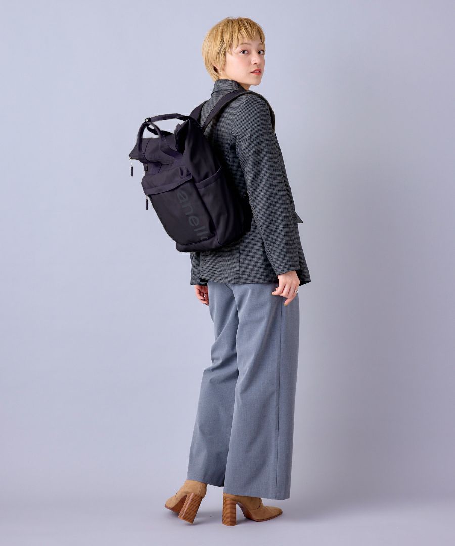 マットなナイロンツイル生地を使用したパディングALF(アルフ)シリーズ。前面にプリント半透明ラバーのanelloロゴがさりげないデザインがポイント。荷物に合わせて調整ができ、しっかりと自立するのが嬉しいポイント◎キャリーオンテープ付きで15インチPC収納可能!両面撥水加工なので雨の日のお出かけにも最適です。