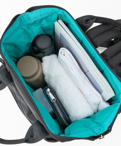 マットなナイロンツイル生地を使用したパディングシリーズのALF(アルフ)シリーズ。前面にプリントされた半透明ラバーのanelloロゴがさりげないデザインがポイント。両面撥水加工なので雨の日のお出かけも最適です。