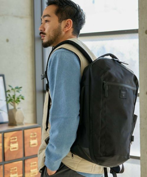 シックで上品、だけど機能的。撥水加工のボディ生地&止水ファスナーで雨の日も安心。底面生地は汚れをさっと拭き取れる合皮を使用。大きすぎず小さすぎない絶妙な大きさの甲羅型リュックは1毎日使いにぴったり。4個のポケット付きで約15インチまでのPCが収納可能。サイドの深めに作られたドリンクホルダーは荷物に合わせてベルト調節が可能。厚みのあるショルダーパットを使用し、背負った際のフィット感をアップしています。