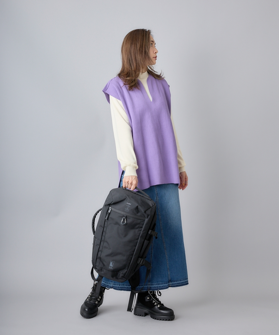 オフィシャルストア限定の特別なデザインです。クリアのブランドネームとシリーズ名“EXPAND”のロゴで凝った印象に。ワンランク上の特別なアイテムに仕上げました。撥水加工なので雨の日も安心しておでかけできるのが嬉しいポイント◎25L容量なので旅行にも最適です。
