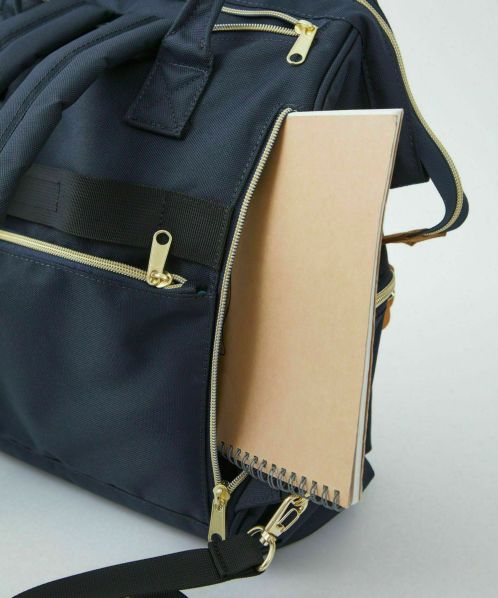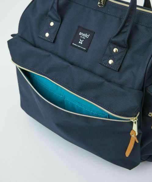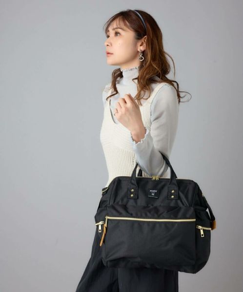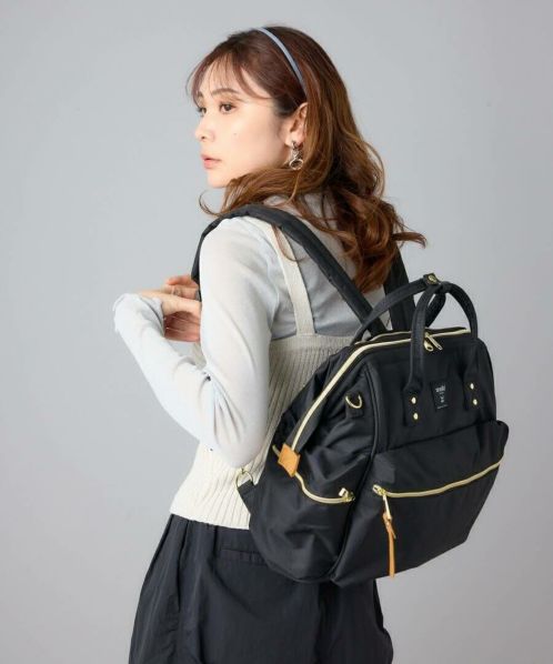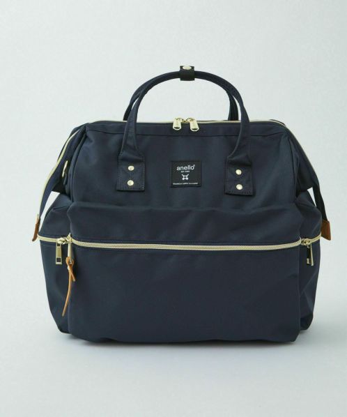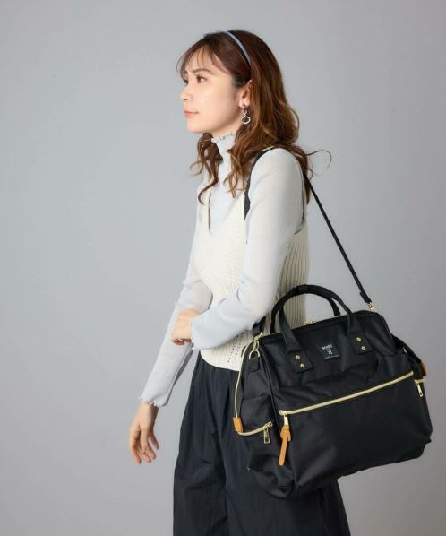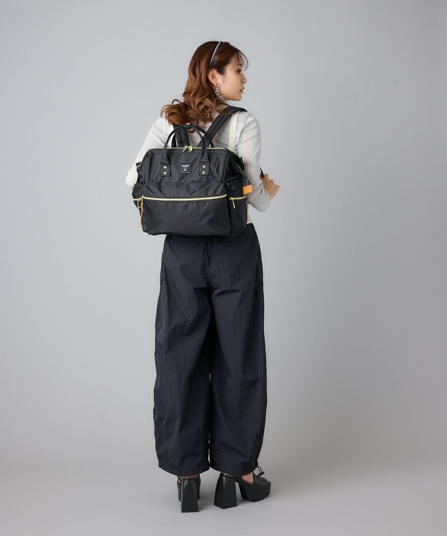 ペットボトルをリサイクルしたREPREVE®にはっ水加工を施し、anelloのアイコンシリーズを刷新。さらに、本革スエードからエコスエードに変更しました。アネラボに寄せられた“ボストン、ショルダー、リュックになる3WAYの口金バッグが欲しい”というお客様の声を形にしたアイテムです。