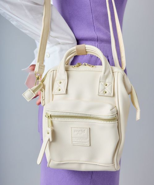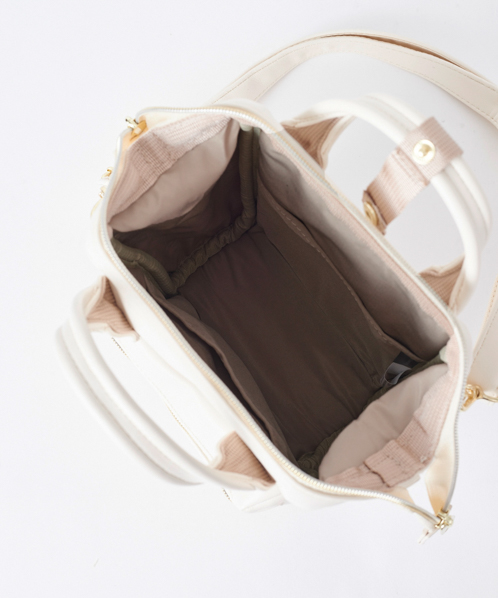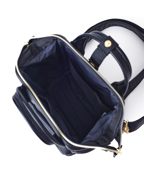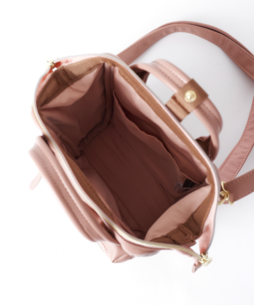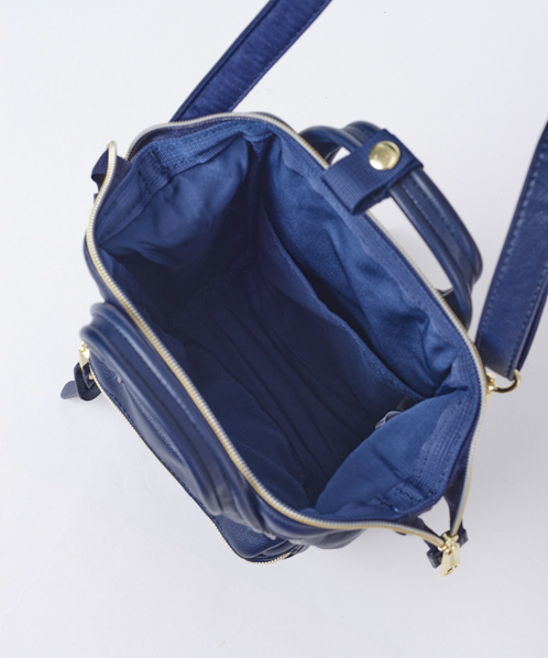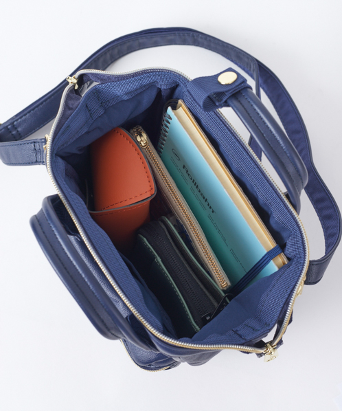 やわらかく滑らかな手触りと、レトロな雰囲気が可愛らしいデザイン。開口部に口金が入っているので、ガバっと大きくひらいて中身が見やすいです。小ぶりで可愛らしいデザインながら、500mlペットボトルや長財布を収納できる優れもの。