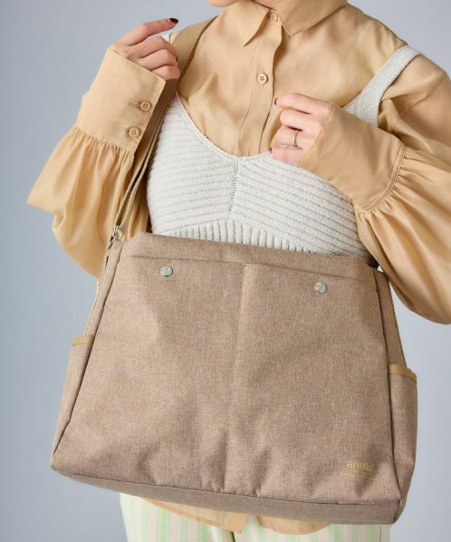 はっ水の杢調ポリエステル生地を使用した、カジュアルかつ上品見えする”BERRY”シリーズ。取り外し可能な合皮のネームタグやシルバーのカシメが大人の日常使いとマッチします。7つのポケットが荷物整理にとっても便利。大きすぎず絶妙なサイズのA4ショルダーは、男女問わずすっきりと着用いただけます。