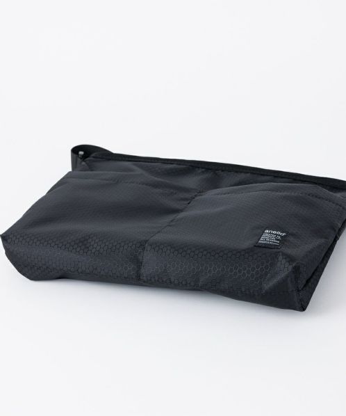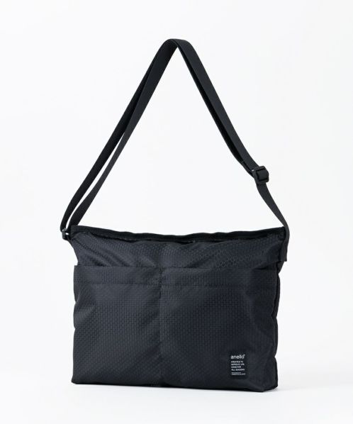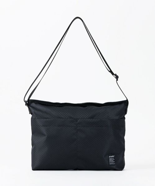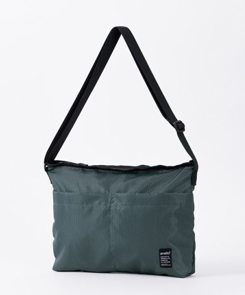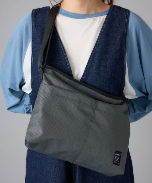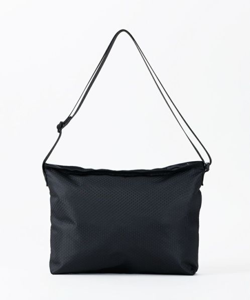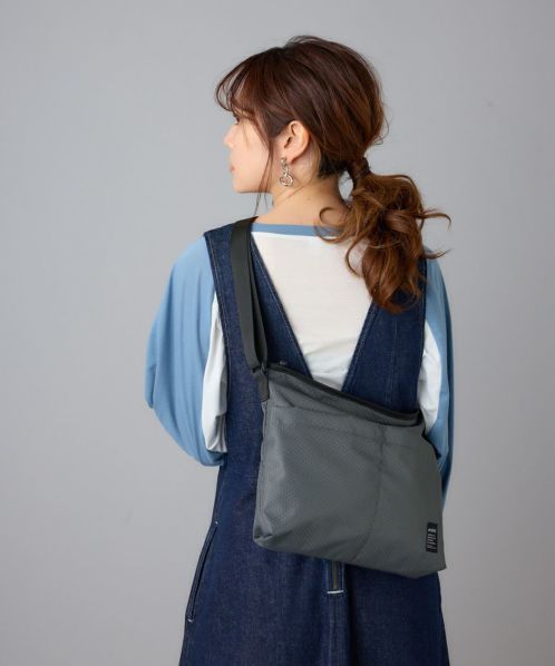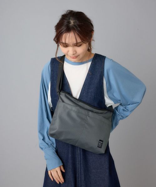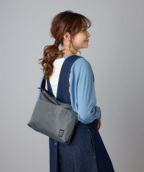 さらっとしたナイロン生地(GBE・NV)と表情のあるハニカムポリ生地(HBK・HGY)2種類が選べる”LIT”シリーズ。どちらも軽量で撥水性のある生地に止水ファスナーを施し、普段使いからアクティブなシーンまで幅広く活躍できるアイテム。A4サイズの薄マチショルダーバッグ。内側には2つのオープンポケットがあり、荷物の仕分けがしやすくなっています◎