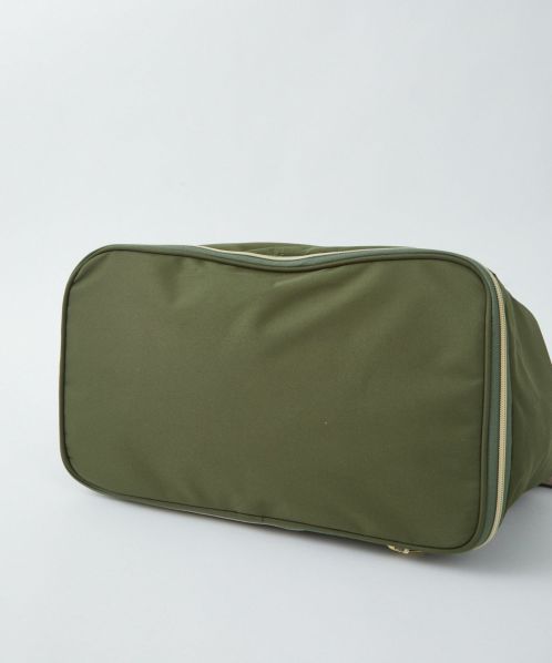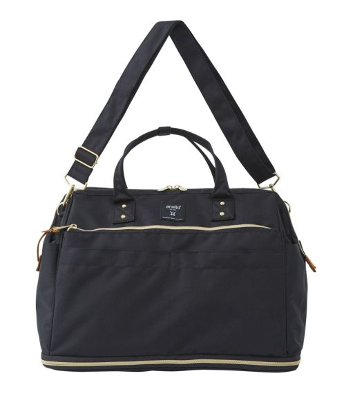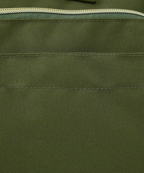 ペットボトルをリサイクルしたREPREVE®にはっ水加工を施し、anelloのアイコンシリーズを刷新。さらに、本革スエードからエコスエードに変更しました。用途に合わせて容量を拡張できる仕様が魅力的。背面側にはキャリーハンドルに通すための面ファスナーが付いており、キャリーに載せたときに安定します。取り外し可能なショルダー付き。