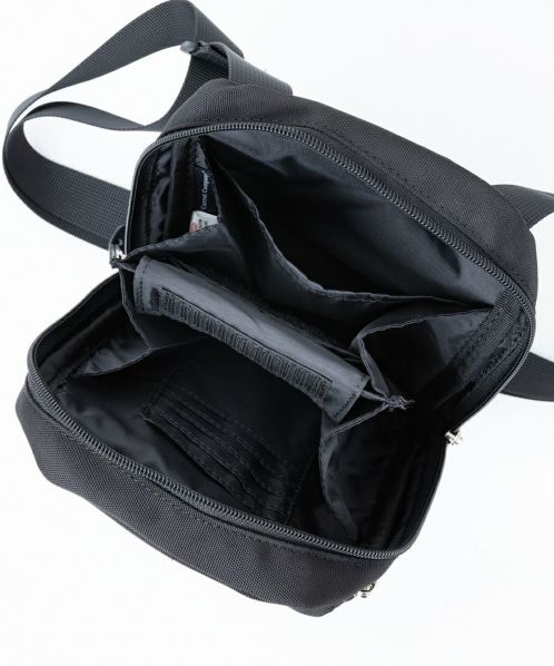 程よい光沢のポリエステル生地にシルバージップがアクセントの"THREE"シリーズ。前面にはアクセスの良い3つのアウトポケットを装備し、使いやすさとデザイン性を兼ね添えたシリーズ。中身がお財布機能になっているミニバッグ。母子手帳やカード、パスポートも収納可能で買い物や旅行にも最適です◎