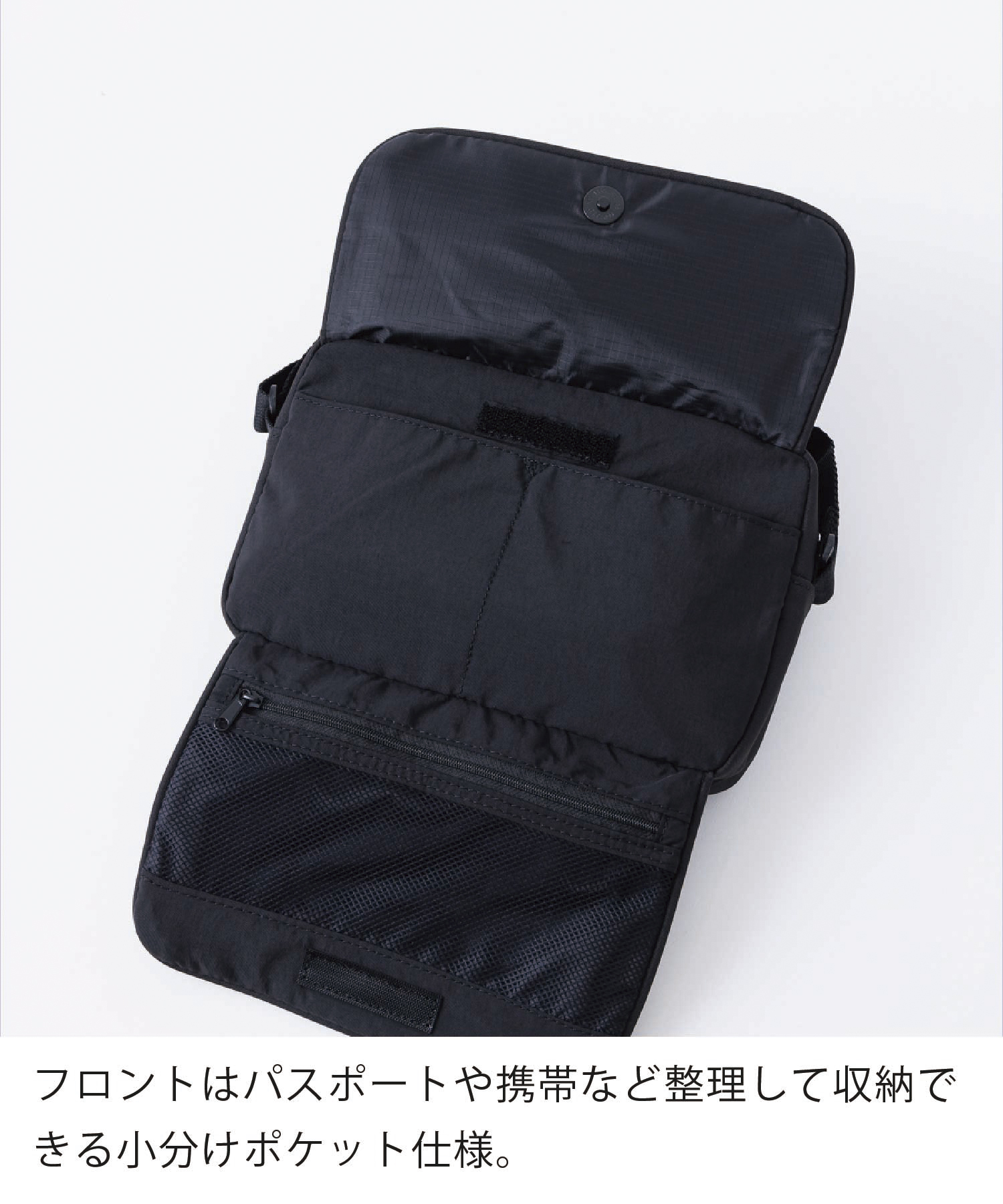 旅行やレジャーに最適なGUIDEシリーズ。ドライタッチな軽量素材を使用し、急な雨や汚れにも強い両面撥水仕様。フラップが上下に見開き、チケットやパスポートを見やすく収納できます。メイン口にファスナーポケット付きなので小物や貴重品を収納できたり、コンパクトながらも充実のポケット数で仕分けやすさ◎