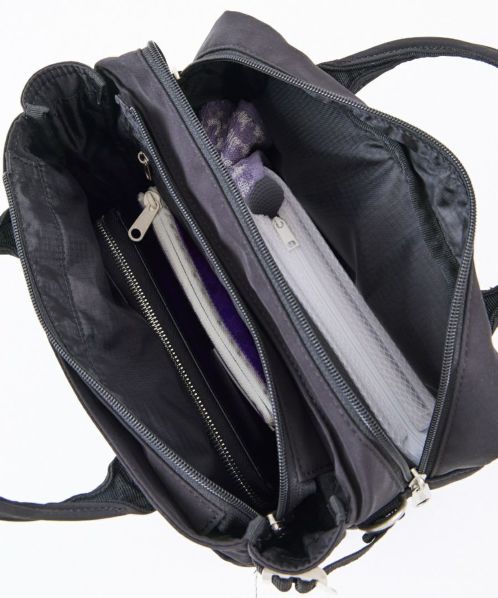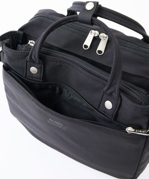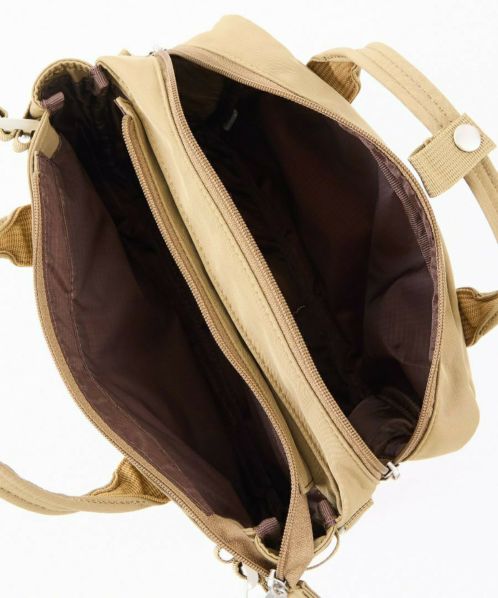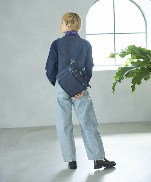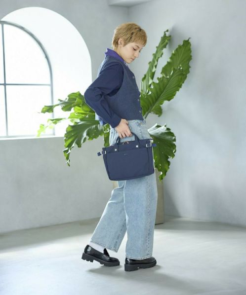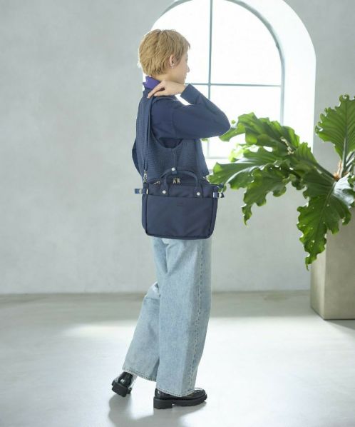 コットンの様な優しい風合いとポリエステルの程よい光沢が絶妙にマッチした素材が特徴。前後に2層に分かれているので、ON/OFFの荷物を見分けやすい。ショルダー幅を太めにしているので肩への負荷も軽減してくれるので毎日使いたくなります◎両面撥水加工なので雨の日も安心。