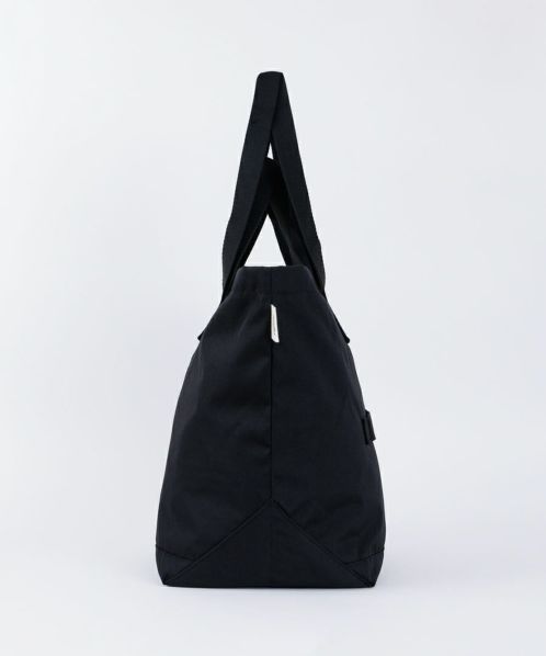 キャンバス調の生地にトレンド感のあるロゴを刺繍しました。軽く、洗濯機でのお手入れが可能でラフに使えるのが魅力。A3サイズが収納可能な大きめトートバッグは、ハンドルが2本ついているから、肩掛けと手持ち両方の持ち方ができる2WAY仕様。1泊~2泊の旅行の荷物を入れるのにもぴったりです。※この製品は洗濯後に乾燥が不十分な場合、金具・部材の劣化や生地の臭いの発生等の可能性がございますのでご注意ください。