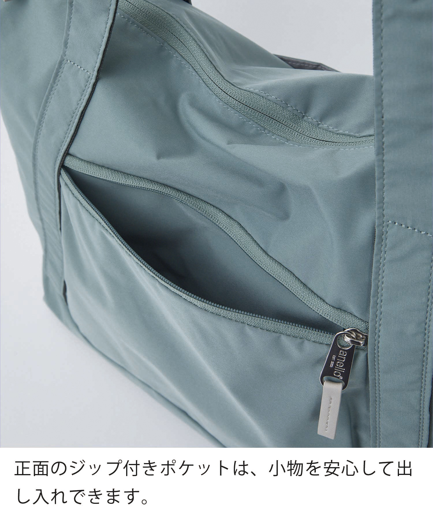 柔らかな肌触りとあたたかみのある優しい印象が人気のCIRCLEシリーズに新型が登場!バッグの前後両方に大きなポケットが付いているのがポイント。前面には鍵などの貴重品を入れるのに便利なファスナーポケットが、背面にはティッシュやハンカチなどさっと取り出したい荷物を入れるのに便利なオープンポケットがついています。A3サイズが入るしっかりとした大きさなので、子育てバッグにもおすすめ。