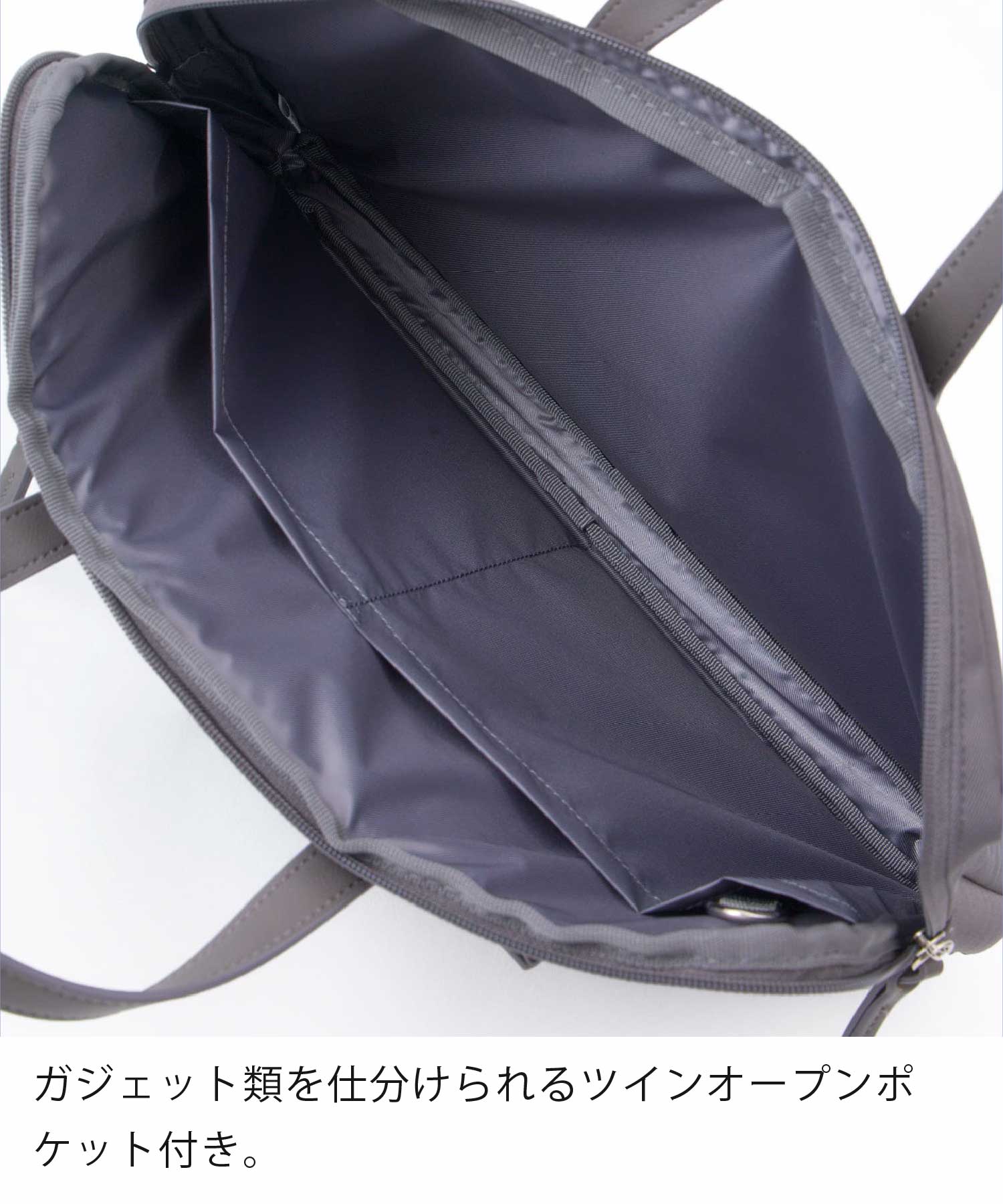 働く女性の毎日を美しく支えるNIA(ニア)シリーズ。やや光沢があり、張り感のある撥水ツイル生地を使用。様々な服装に合わせやすい洗練されたデザインと、ビジネスシーンで役立つ充実した機能性を兼ね備えています。15インチのPCがすっきりと収まるサイズ感ながら、スリムな設計でバッグの中でもかさばらないのが嬉しいポイントです◎メイン収納の内側はガジェット類を分けて収納できるツインオープンポケット。前面ポケットにはペン差しが付いており、細かなアイテムも整理整頓できます。
