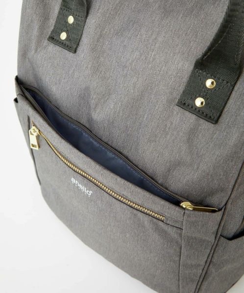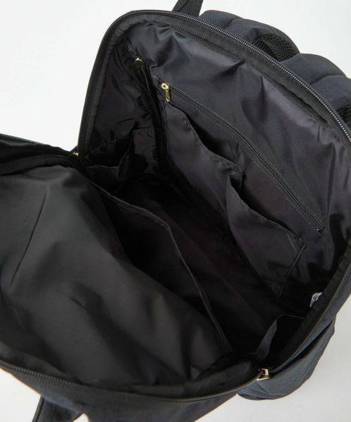 杢調ポリエステル生地にゴールド金具を使用し、カジュアル過ぎないデザインに仕上げました。内生地にも撥水加工を施しているので、内側も汚れにくい嬉しい仕様。開口部が大きく開くので、荷物の出し入れがとっても楽々です。10ポケットで小物収納もバッチリ。マザーズバッグとしてのお使いも◎