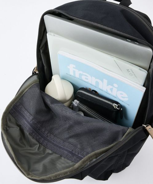 トラベルシーンにも対応できる、普段から使える拡張バッグシリーズ。撥水素材を使用した軽量仕上げのリュック。内側のクッションポケットは書類やPC用としてはもちろん、へたれにくいので何でもザクザク収納しやすい万能ポケットです!本体背面はメッシュで通気性UP!