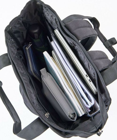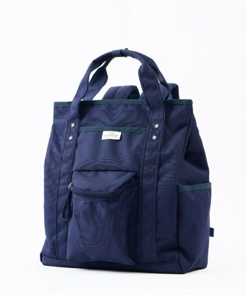 はっきり鮮やかカラーの生地でカジュアルなファッションに合わせやすい、DRIVE(ドライブ)シリーズ。ツヤなしのシルバー金具や、コットン生地のネームタグがアクセント。嬉しい両面はっ水仕様。10ポケットの多機能トート型リュック。前面の半円立体ポケットがポイント。外側サイド上部のホックを開け閉めし、2つのシルエットに切り替えできます。A4書類が収まるサイズで、13インチのPC収納付き◎