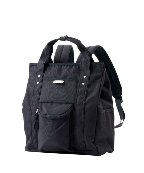 はっきり鮮やかカラーの生地でカジュアルなファッションに合わせやすい、DRIVE(ドライブ)シリーズ。ツヤなしのシルバー金具や、コットン生地のネームタグがアクセント。嬉しい両面はっ水仕様。10ポケットの多機能トート型リュック。前面の半円立体ポケットがポイント。外側サイド上部のホックを開け閉めし、2つのシルエットに切り替えできます。A4書類が収まるサイズで、13インチのPC収納付き◎