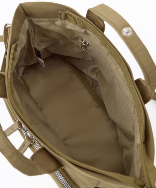 10ポケットの機能性抜群な”CORY(コリー)”シリーズ。コンパクトな見た目ながら、A5サイズのノートやタブレット、500mlペットボトルもすっきりと収まるサイズ感なのも嬉しいポイントです◎表地・裏地の両面に「撥水加工」が施されているため、突然の雨や水濡れにも強く、お子様とのお出かけやレジャーにも安心して持ち歩けます。