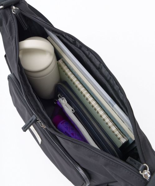 10ポケットの機能性抜群な”CORY(コリー)”シリーズ。通勤・通学からマザーズバッグ、旅行まで、幅広いシーンで活躍する大容量ショルダーバッグです。コロンとした丸みのあるフォルムは、体に優しくフィットし、両手が自由に使える快適な背負い心地を実現します。開口部がガバッと大きく開くので、荷物の出し入れがとってもスムーズに!!急な雨でも安心な「両面撥水加工」が施されており、毎日気兼ねなくお使いいただけます。