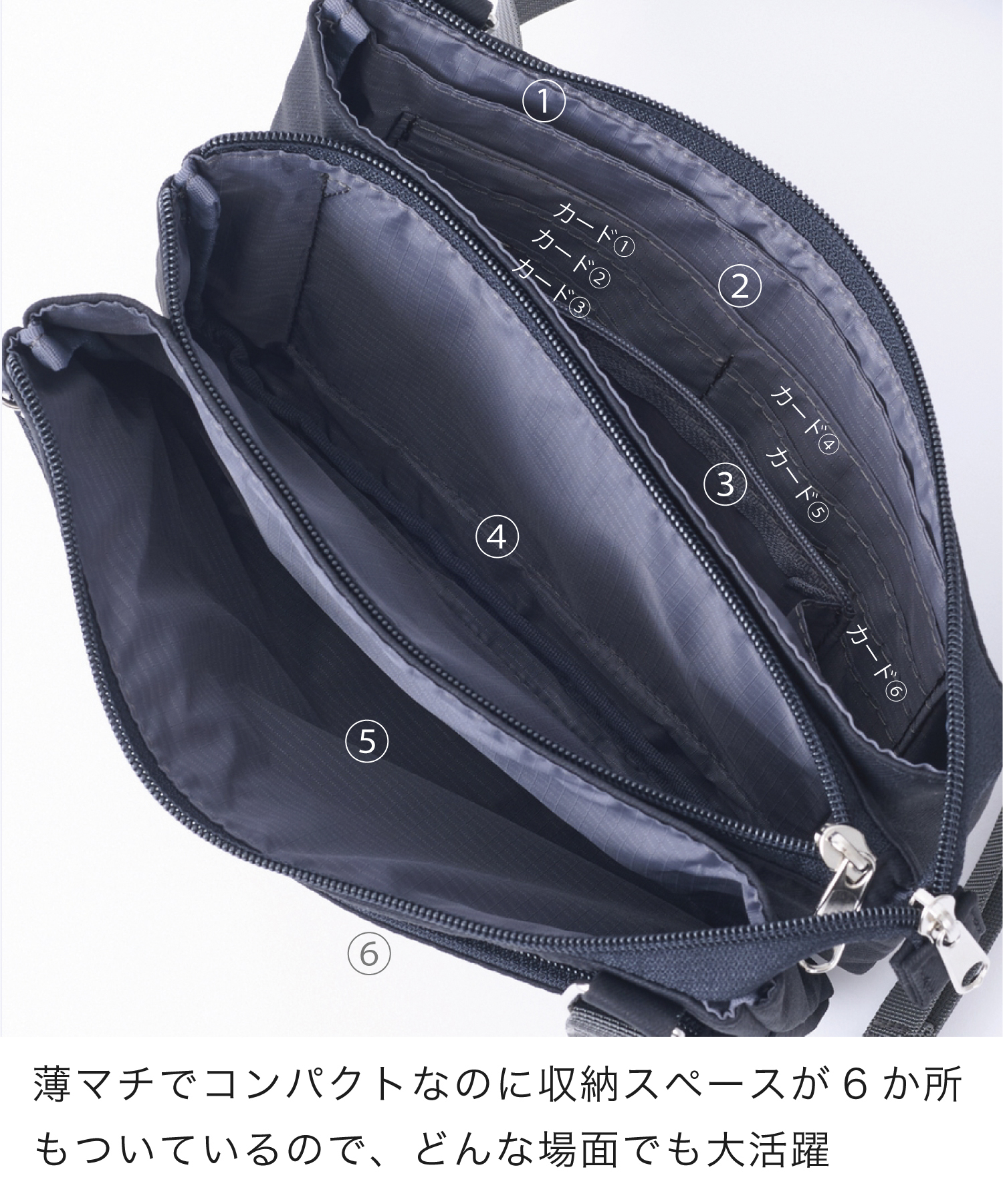 丸みのある優しいかたちで、気分も雰囲気も柔らかいモッテシリーズ新型が登場!前面のファスナーポケットを合わせると収納スペースが計6箇所ある多機能ショルダーポケット。小物類を分けて収納でき薄マチなのでコンパクトに持ち運べるのが嬉しいポイント◎