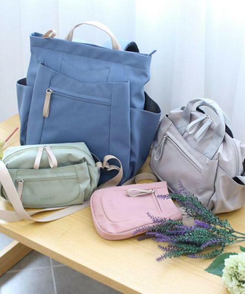 花のつぼみをイメージしたIRISシリーズ。さらっとしたコットン調生地ところんと丸い形で上品な雰囲気に。シリーズ共通の曲線デザインを活かし軽量素材で両面撥水加工なのが嬉しいポイント◎コンパクトな見た目ですが多ポケット仕様で普段使いしやすいです。
