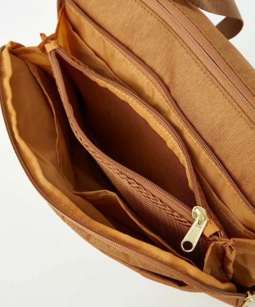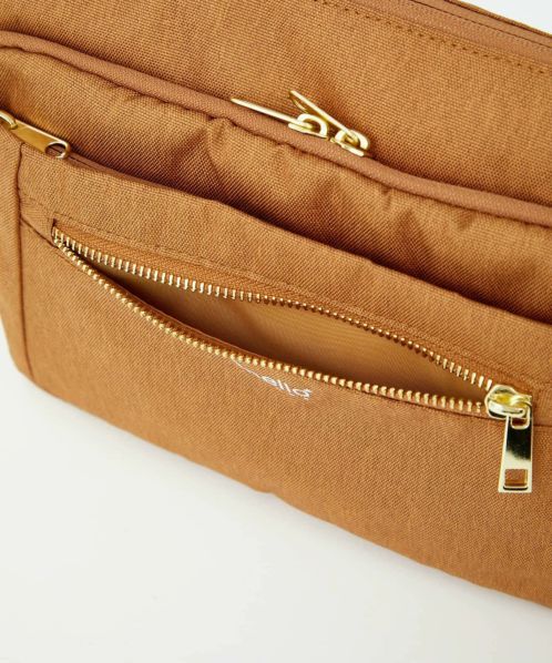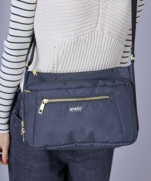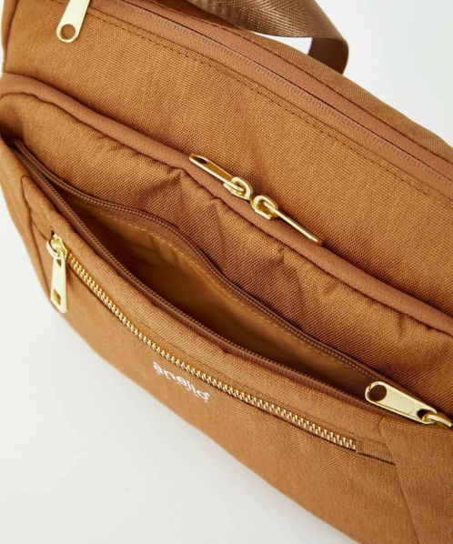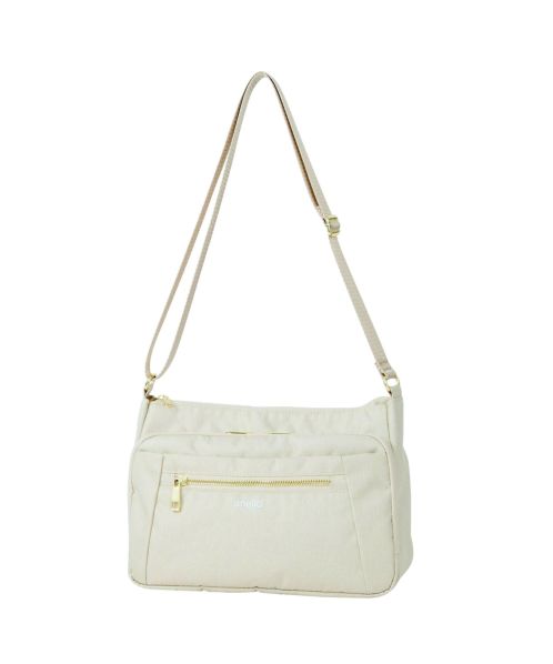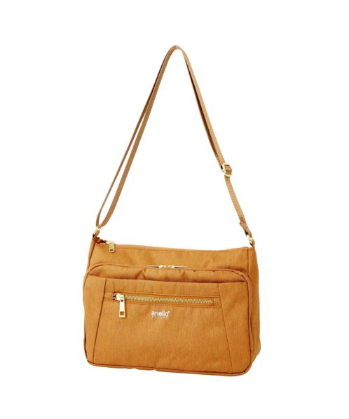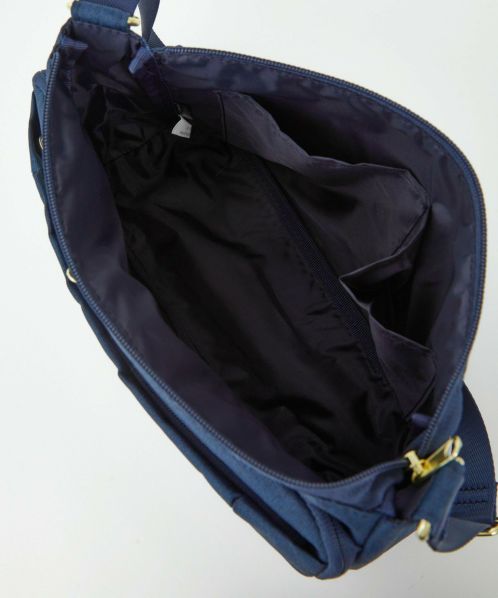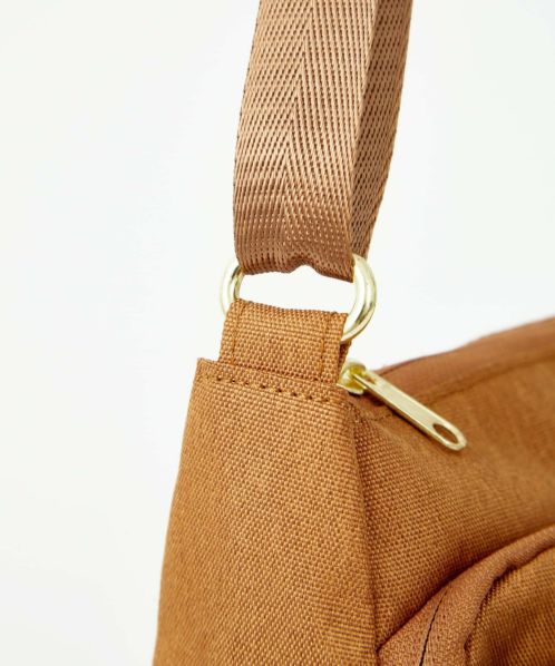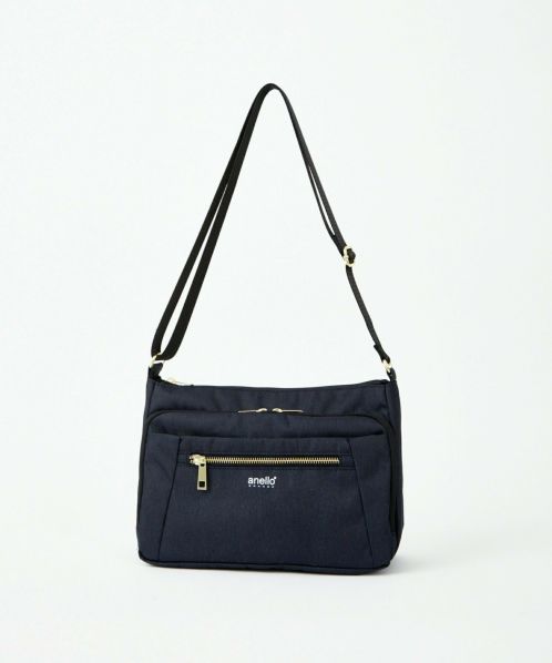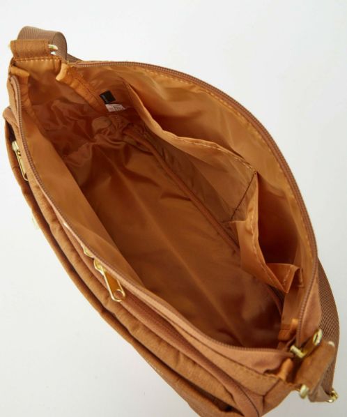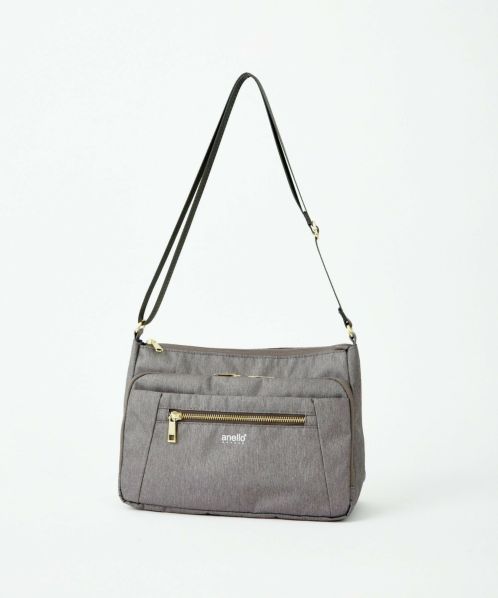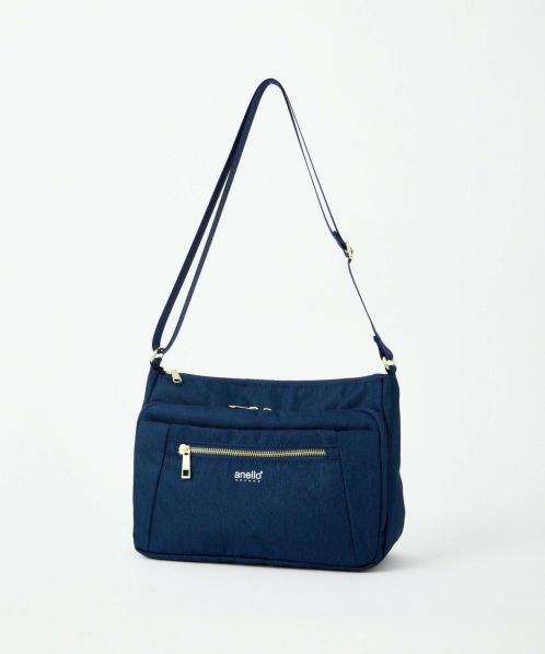 杢調ポリエステル生地にゴールド金具を使用し、カジュアル過ぎないデザインに仕上げました。内生地にも撥水加工を施しているので、内側も汚れにくい嬉しい仕様。小ぶりなサイズながら10ポケットで収納力抜群です。長財布や500mlのペットボトルなども入るサイズ感で、お買い物やお出かけにもお使いいただけます。