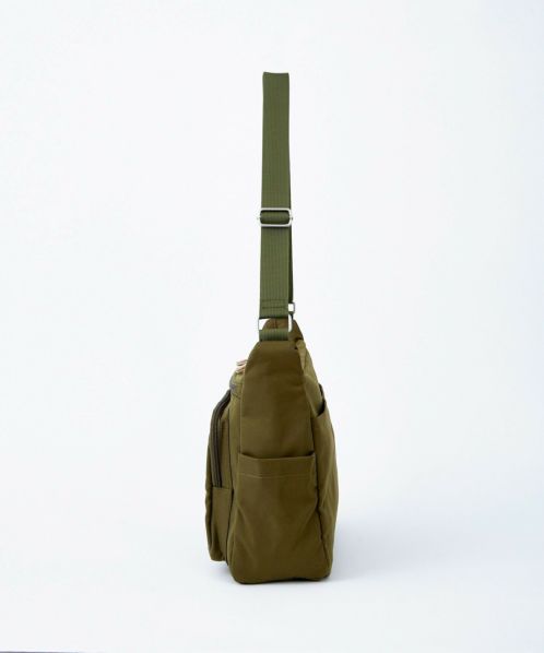 バイカラーのパイピングデザインと使い合わせの合皮がアクセントになったミニショルダーバッグ。柔らかい手触りのツイルポリエステルを使用しました。合皮を使い合わせることにより高級感のある雰囲気に。A4サイズがしっかりと収納でき、更に10ポケット仕様の機能性抜群なショルダーバッグです。