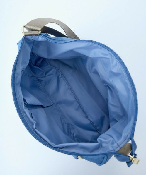杢調ポリエステル生地にゴールド金具を使用し、カジュアル過ぎないデザインに仕上げました。内生地にも撥水加工を施しているので、内側も汚れにくい嬉しい仕様。A5サイズ収納可能でちょっとしたお出かけや買い物に最適です。