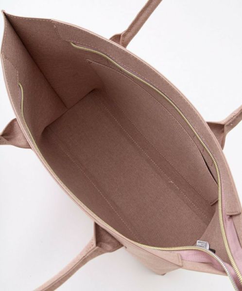 ボンディングした杢調ポリエステル生地をレザーバッグのように仕立てたPINOシリーズ。コロンとした形にゴールド金具でに上品に仕上げました。A4サイズが収納可能で、普段使いだけでなく通勤や通学にも使いやすいトートバッグ◎
