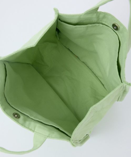 色味のいいライトオンスのキャンバス生地に同色で大きめなプリントをしたMUG(マグ)シリーズ。普段使いでも、メインのバッグと2個持ちでもかわいい。