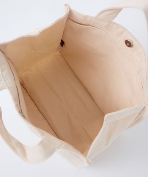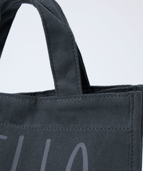 色味のいいライトオンスのキャンバス生地に同色で大きめなプリントをしたMUG(マグ)シリーズ。普段使いでも、メインのバッグと2個持ちでもかわいい。