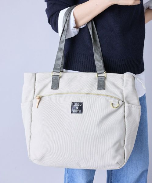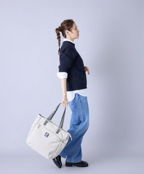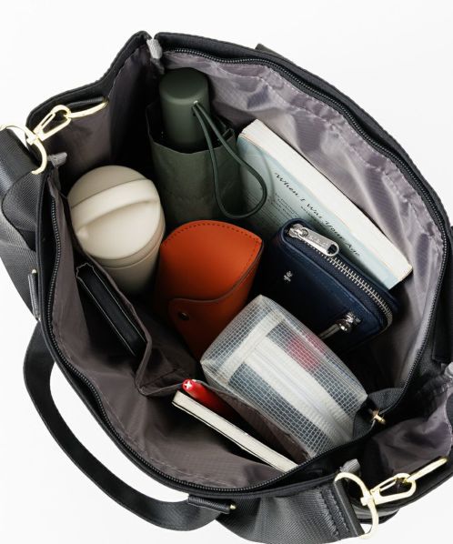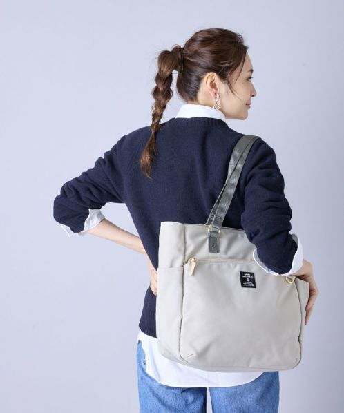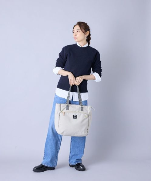 やさしくからだになじむ、まるみシルエットのMART(マート)シリーズ。印象的なアーチ型ゴールドファスナーと、配色のショルダーテープ、ベージュの床革引手、ブラックのサテンネームがポイント。ハンドル&ショルダーテープ付きで、肩掛けも斜めがけもできるA4サイズのトートバッグ。普段使いからお仕事まで、あらゆるシーンで活躍します◎正面に、キーホルダーや御守り、パスケースを取り付けできるDかん付き。