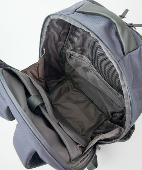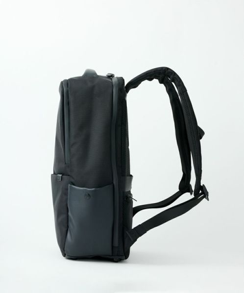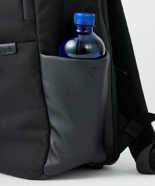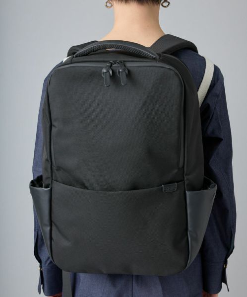 “ こうだったらいいな。“お客様の声をぎゅっと凝縮した機能性たっぷりな『Cliente(クリエンテ)』シリーズ。性別・年齢問わずに幅広い層のお客様にお使いいただけるよう、ベーシックなデザインに仕上げました。両面撥水の生地を使用し、高級感ある合皮を使い合わせが落ち着きのある印象に。底鋲やリール型キーフックがあるので、お仕事などの毎日使いでも安心感があります。ポケットは17個、そして容量はうれしい25リットル。15インチのPCが収納でき、弾力のある持ち手やショルダーで身体の負担を軽減します。