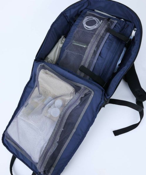 縦開きタイプ。左右対称の前面ポケットがアイコニックなデザインの大容量マルチリュック。2泊分の荷物も仕分けして収納可能。内生地撥水のドリンクポケットですっきり収納。荷物が少なくても自立する設計。