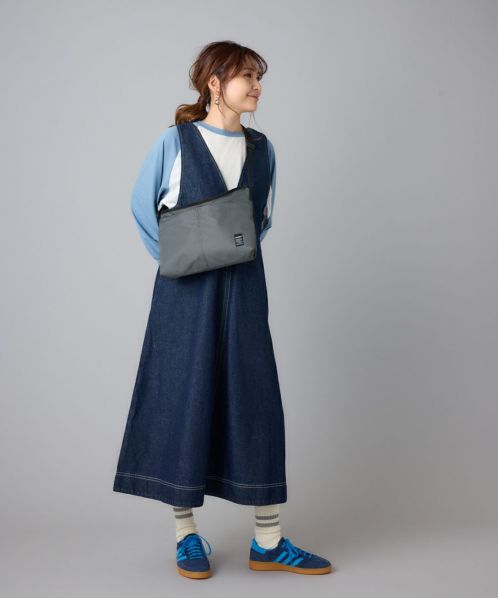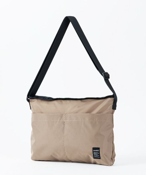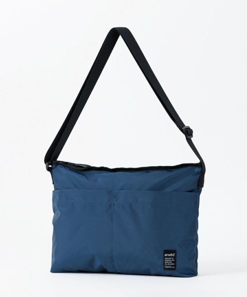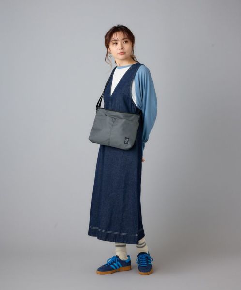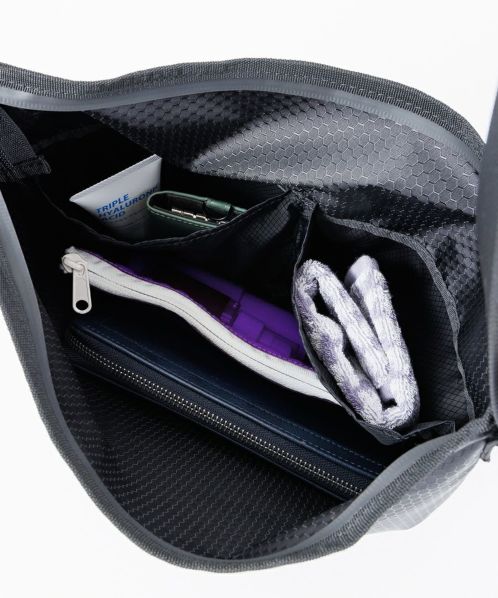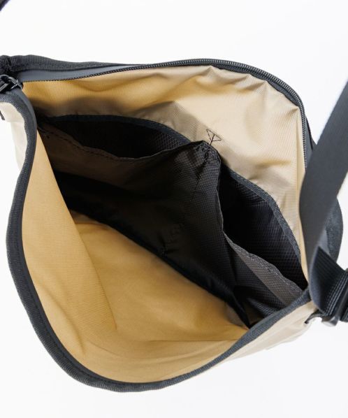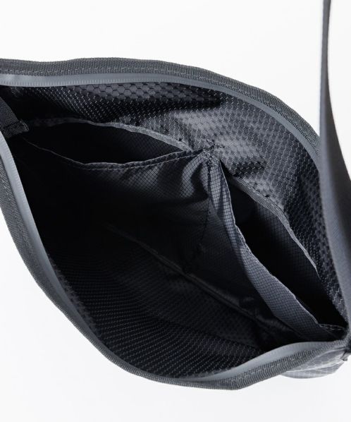 さらっとしたナイロン生地(GBE・NV)と表情のあるハニカムポリ生地(HBK・HGY)2種類が選べる”LIT”シリーズ。どちらも軽量で撥水性のある生地に止水ファスナーを施し、普段使いからアクティブなシーンまで幅広く活躍できるアイテム。A4サイズの薄マチショルダーバッグ。内側には2つのオープンポケットがあり、荷物の仕分けがしやすくなっています◎