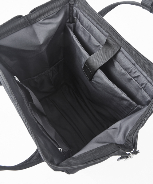 ファスナーや使い合わせの素材は本体カラーと同色に。金具カラーもシルバーにし、落ち着いた印象に仕上げました。また、今までになかったグレーベージュの色を新たに作成。開口部が口金仕様で、大きく開くので荷物の出し入れが楽々です。背面には貴重品を収納できるセキュリティーポケットと本体収納へ直結するファスナー付き。22L収納できる大きめ容量なので、幅広いシーンで活躍すること間違いなし。機能性と使いやすさの備わった、他にはない特別感の詰まったアイテムです!