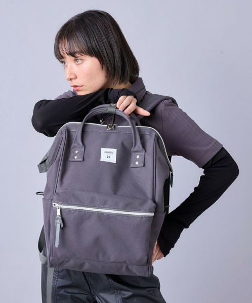 ペットボトルをリサイクルしたREPREVE®にはっ水加工を施し、anelloのアイコンシリーズを刷新。さらに、本革スエードからエコスエードに変更しました。機能面も、より使いやすくグレードアップ。PC収納、キャリーオン、セキュリティポケット、サイドポケット部にDカンを追加しました。